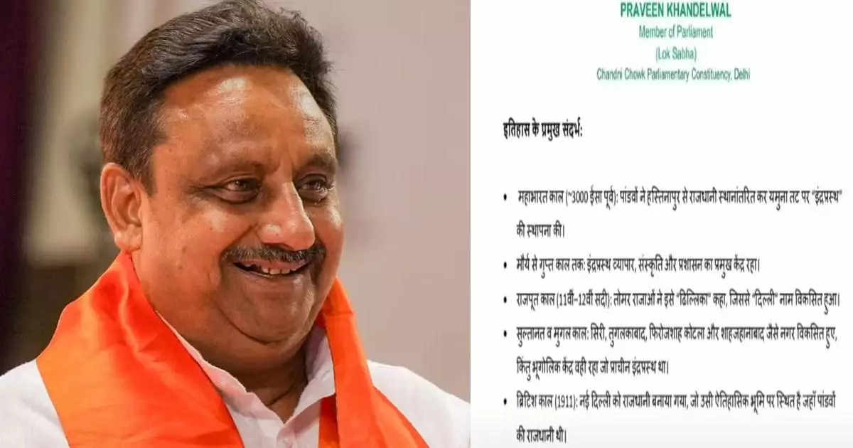 ഡൽഹിയുടെ ചരിത്രം ആയിരക്കണക്കിന് വർഷങ്ങൾ പഴക്കമുള്ളത് മാത്രമല്ല, ഇന്ത്യൻ നാഗരികതയുടെ ആത്മാവും പാണ്ഡവർ സ്ഥാപിച്ച ‘ഇന്ദ്രപ്രസ്ഥ’ നഗരത്തിന്റെ ഊർജ്ജസ്വലമായ പാരമ്പര്യവും ഉൾക്കൊള്ളുന്നതാണ്. ഡൽഹി വെറുമൊരു ആധുനിക മഹാനഗരമല്ല, മറിച്ച് ഇന്ത്യൻ നാഗരികതയുടെ ആത്മാവാണെന്ന് ഖണ്ഡേൽവാൾ കത്തിൽ പരാമർശിച്ചു. പ്രയാഗ്രാജ്, അയോധ്യ, ഉജ്ജയിൻ, വാരണാസി തുടങ്ങിയ രാജ്യത്തെ മറ്റ് ചരിത്ര നഗരങ്ങൾ അവയുടെ പുരാതന സ്വത്വങ്ങളുമായി വീണ്ടും ഒന്നിക്കുമ്പോൾ, ഡൽഹിയെ അതിന്റെ യഥാർത്ഥ രൂപത്തിൽ ബഹുമാനിക്കണമെന്നതാണെന്നും ഖണ്ഡേൽവാൾ കത്തിൽ പറയുന്നു.